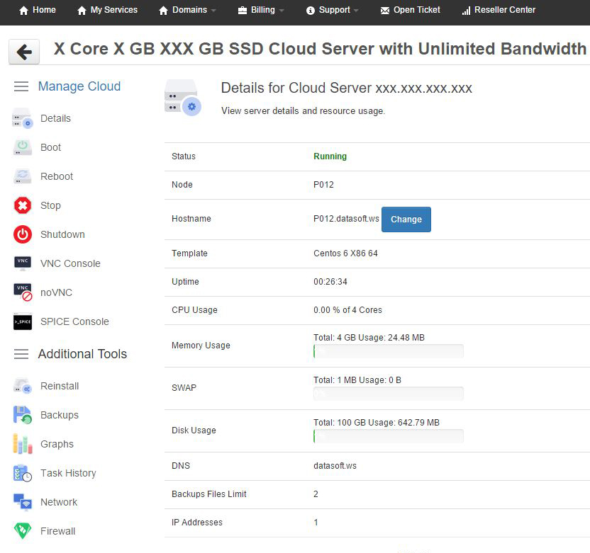 Take 100% Control of your Cloud Servers with our most advanced user friendly Cloud Control Panel. Restart, Stop, Start, Reinstall Operating systems, Take backup, View usage Graphs etc from the Panel.