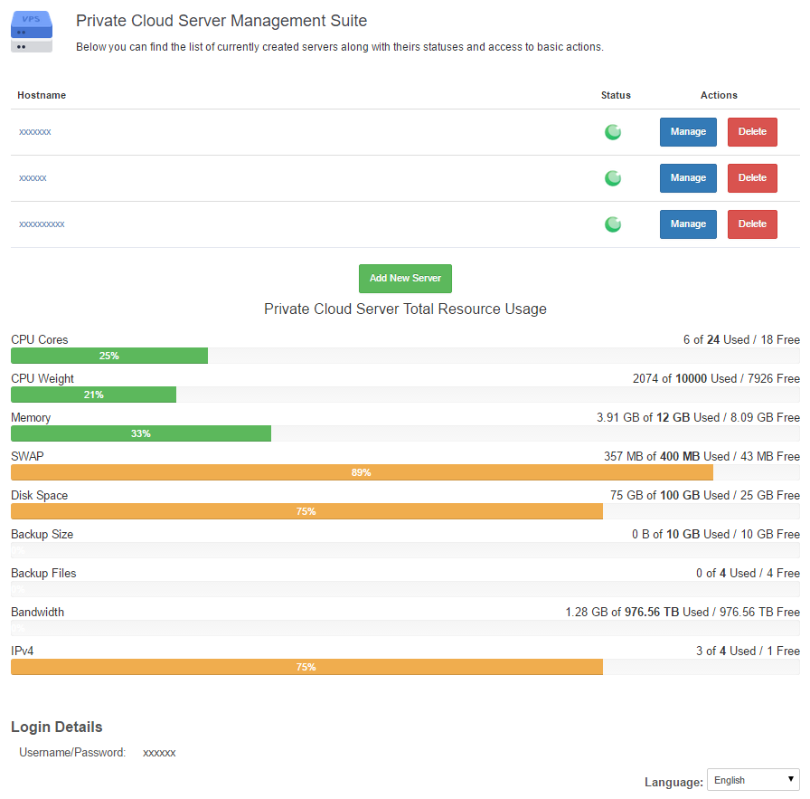 Private Cloud Server is a Suite of four Individual Cloud Servers. You can create upto 4 Cloud Servers. We are providing you a Control Panel with a full range of Private Cloud Server management Suite to create and manage four Cloud Servers.