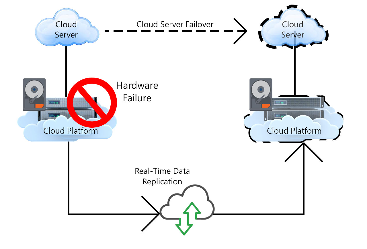 With our new Data Replicated Fault Tolerant Cloud Server Architecture, There will be two Cloud Server running at two different Cloud Server Platform at the same time and first Cloud Server Drive is replicated to second Cloud Server Drive in realTime. This setup gets rid of the Single Point of Failure. Thus making it a 100% Fault Tolerant Cloud Server Setup.